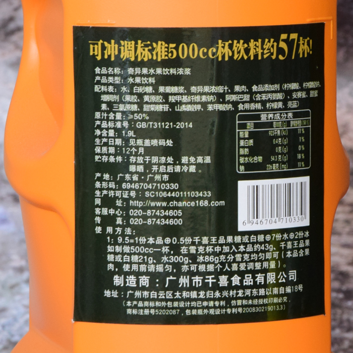 Net content of single bottle: