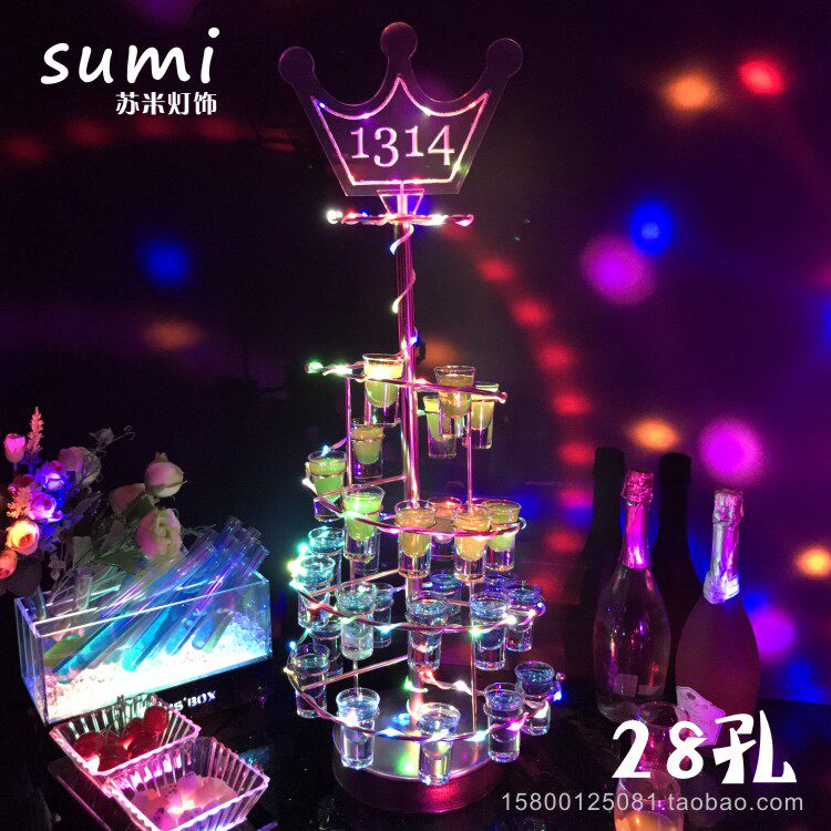 LED luminous cocktail cup holder Bar luminous 26 hole foreign wine cup holder Bar KTV bullet colorful cup holder