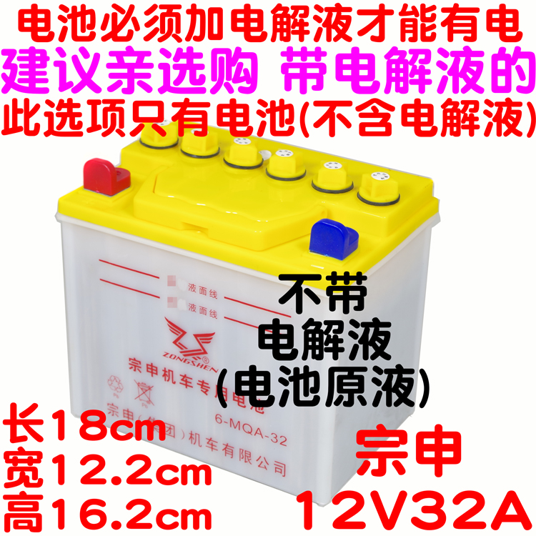 Zongshen 12V32 water battery (no electrolyte without electricity) Zongshen 12N32A electrolyte Yangtze River 32A free of maintenance battery Rong Lian 32A free of maintenance battery engine leopard unified 32A free of maintenance