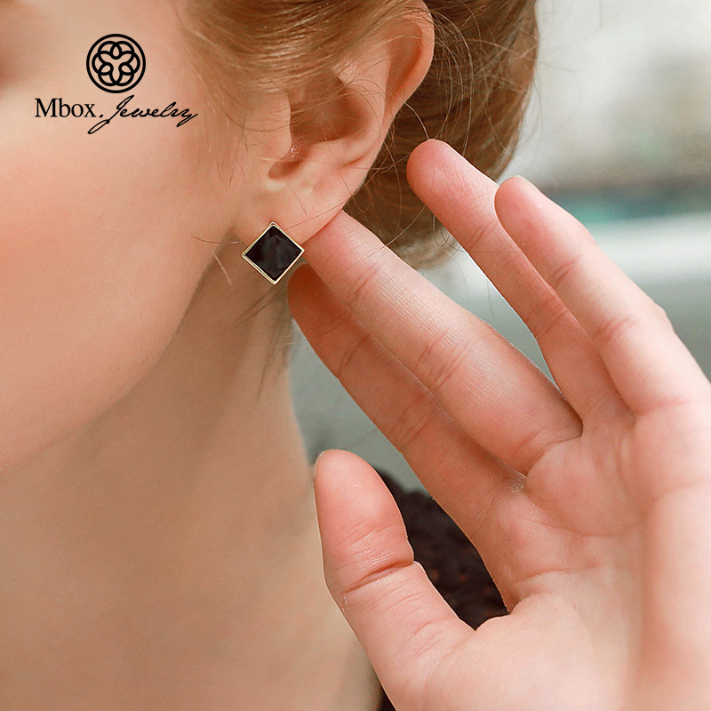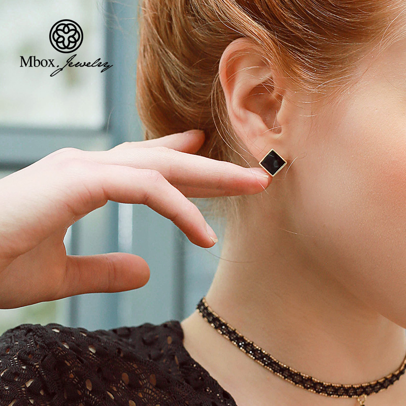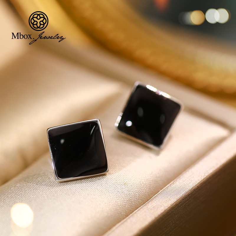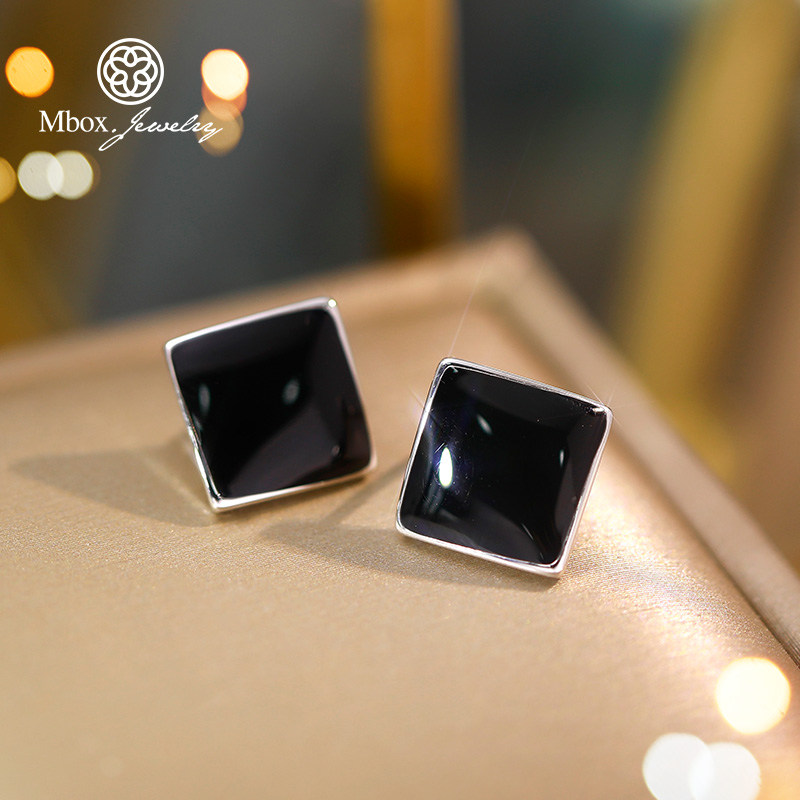 Black ear pin minimalist lukewarm wind 2021 new temperament superior pure silver needle ear decoration without ear clip female
