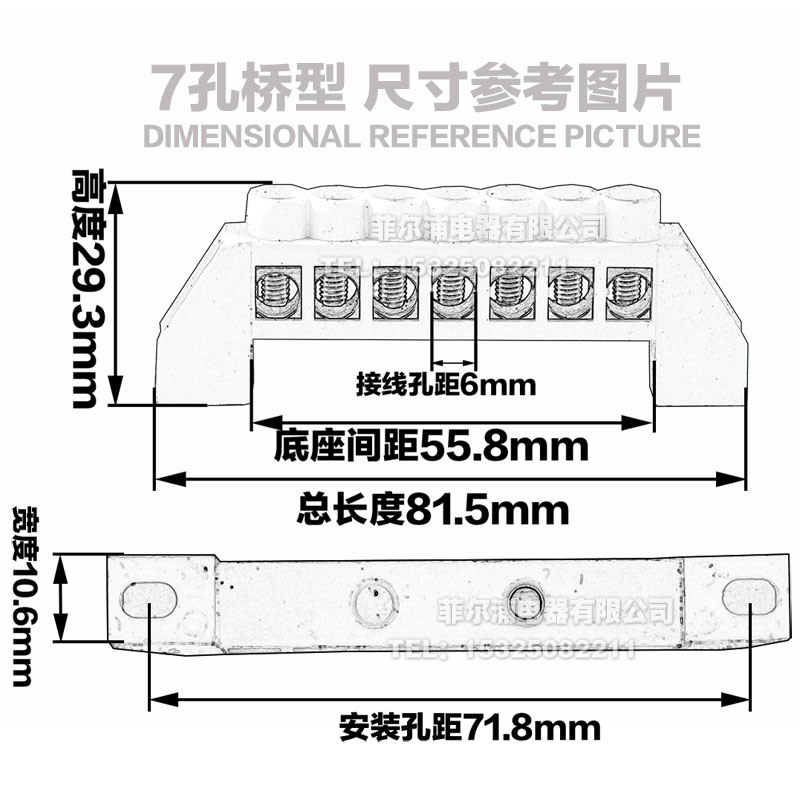 National standard distribution box terminal 7 hole bridge zero ground row fixed zero row 6*9 seven copper row