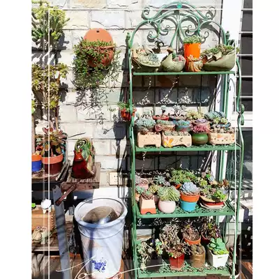 Living room shelf partition modern simple bookshelf floor bedroom retro flower stand American country old iron art