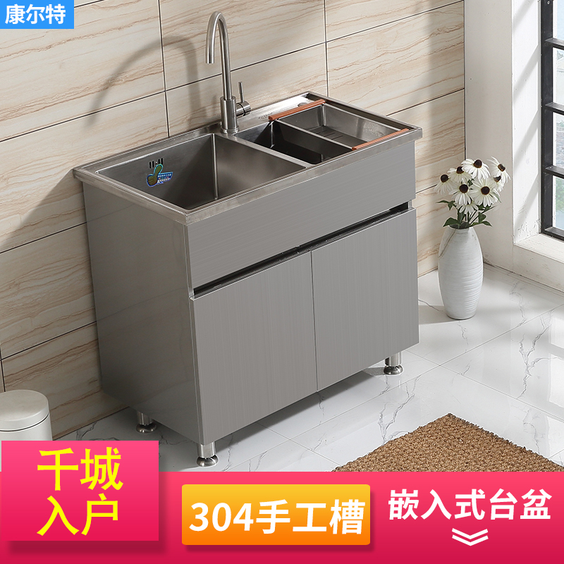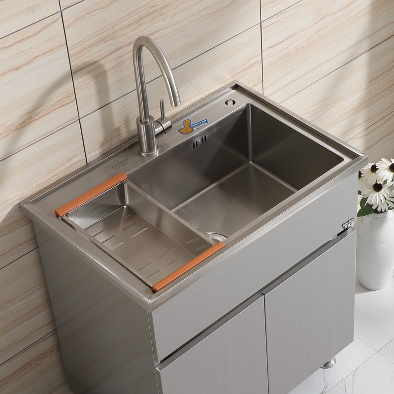 Stainless steel laundry wardrobe balcony wash cabinet combination kitchen 304 handmade sink cabinet floor-to-ceiling integrated vegetable basin