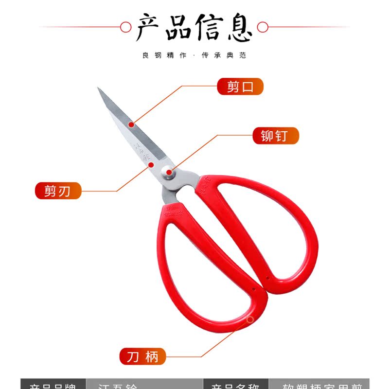 Wang Wuquan Stainless steel office scissors Household red plastic handle scissors cloth scissors hand-cut nail scissors