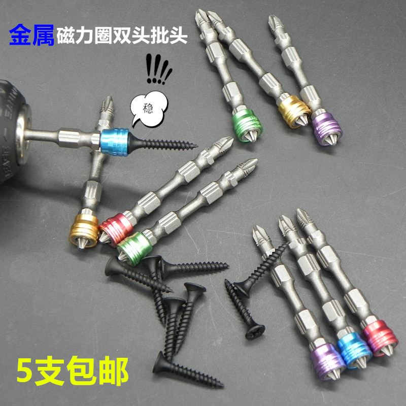 Magnetic ring electric screw screwdriver head double head cross pneumatic screwdriver electric drill batch head driver abrasion-proof strong magnetic Beatle suit