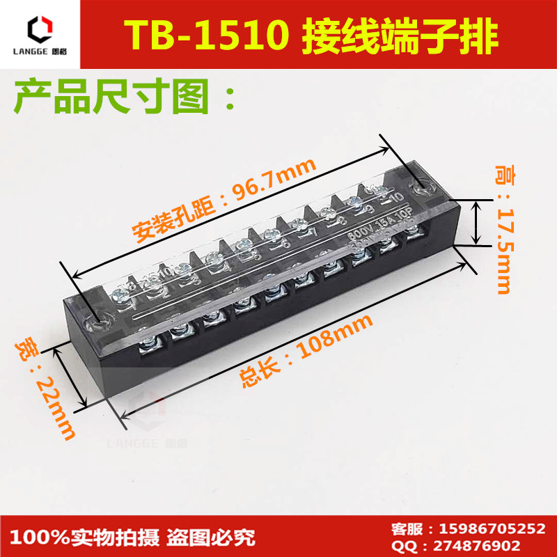 TB-1510 terminal 15A 10-bit wiring row wiring board TB1510 terminal row iron sheet