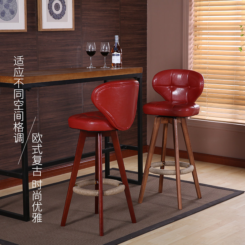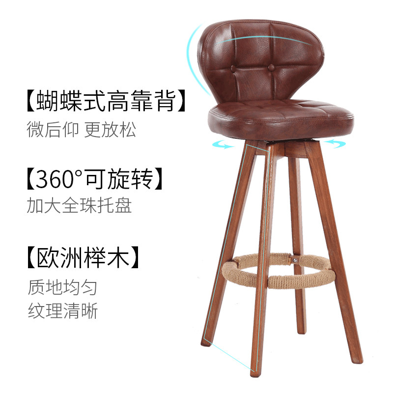 North Wood Eurostyle Modern Minimalist Bar Chair Home Retro Solid Wood High Foot Swivel Bar Chair Backrest High Footstool