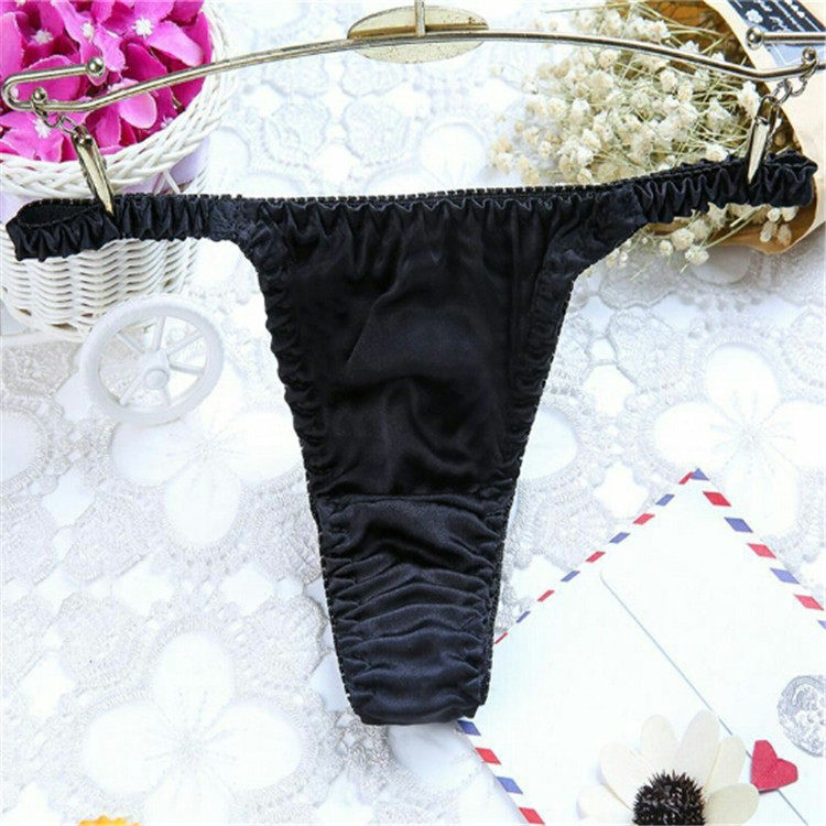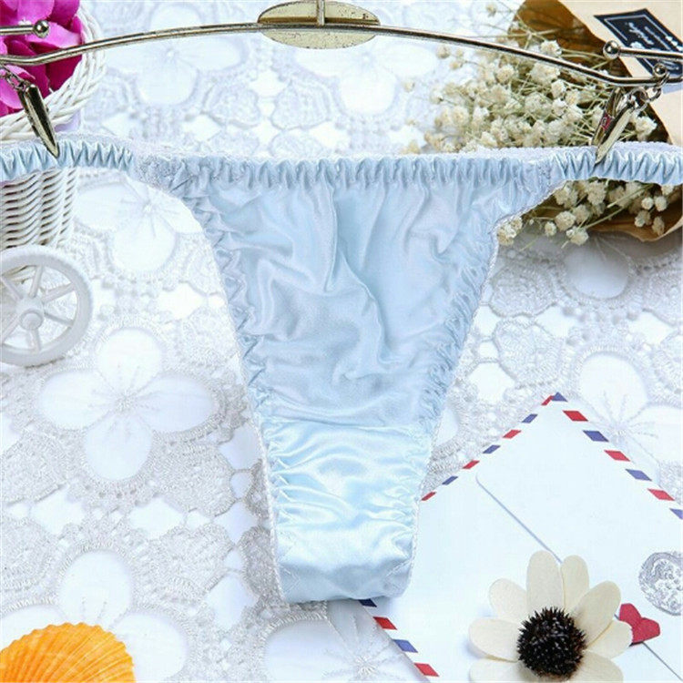 Silk women's underwear sexy European and American temptation silk thong low waist T pants silky satin transparent temptation underwear