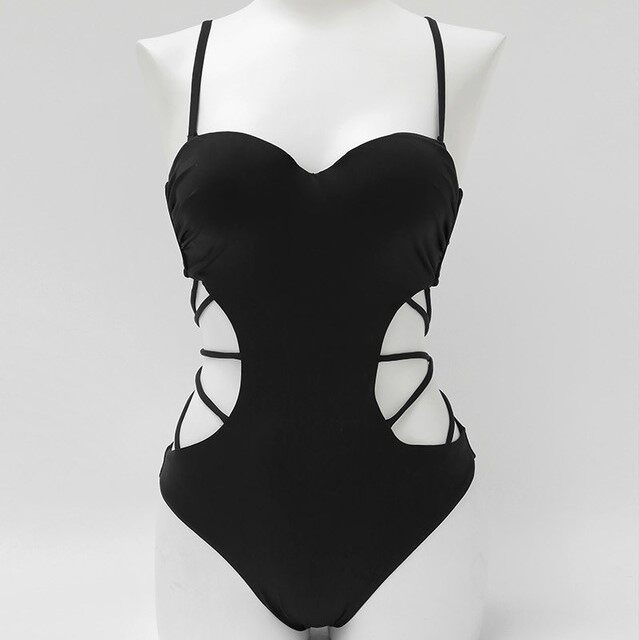 Special female black Korean version with steel support small chest one-piece openwork bikini sexy Korean version hot spring swimsuit