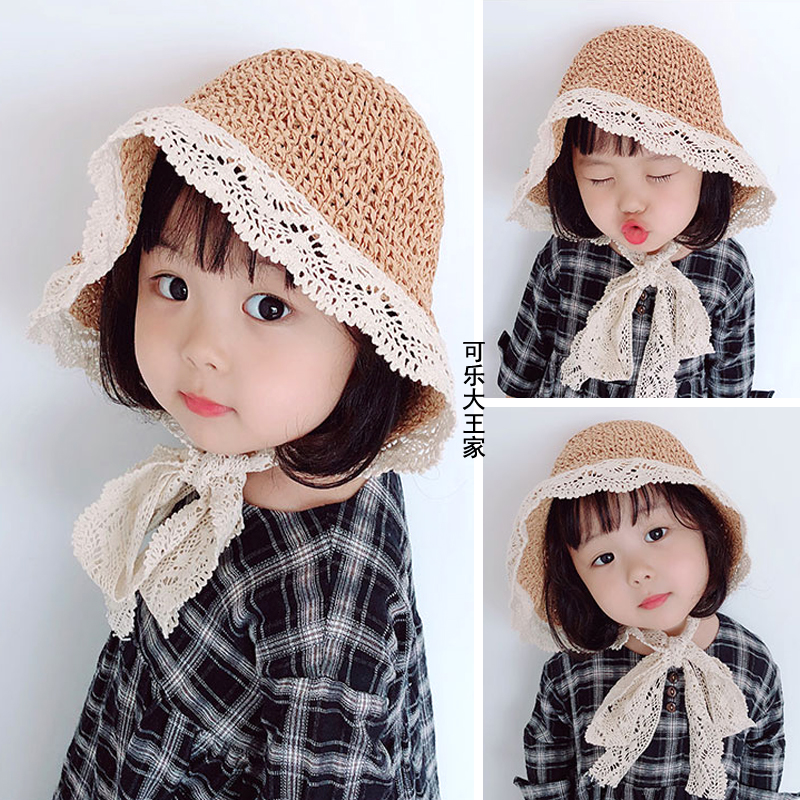 Baby Baby Grass Hat Baby Mother Girl Child Girl Child Spring Autumn Season Sunscreen Sunscreen Lace Korean Version Summer Beach Hat