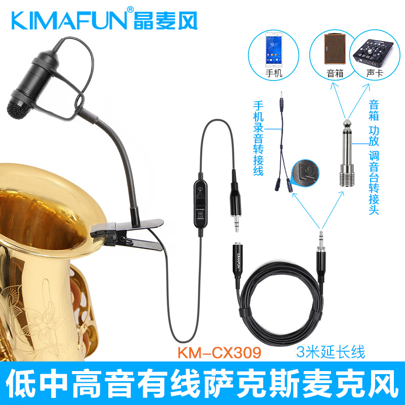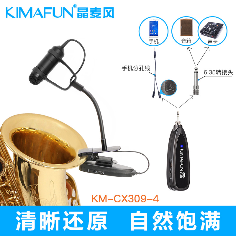 KIMAFUN Crystal Wheat Breeze Sax Special Wireless Microphone Pickup Cable Microphone Outdoor CX309