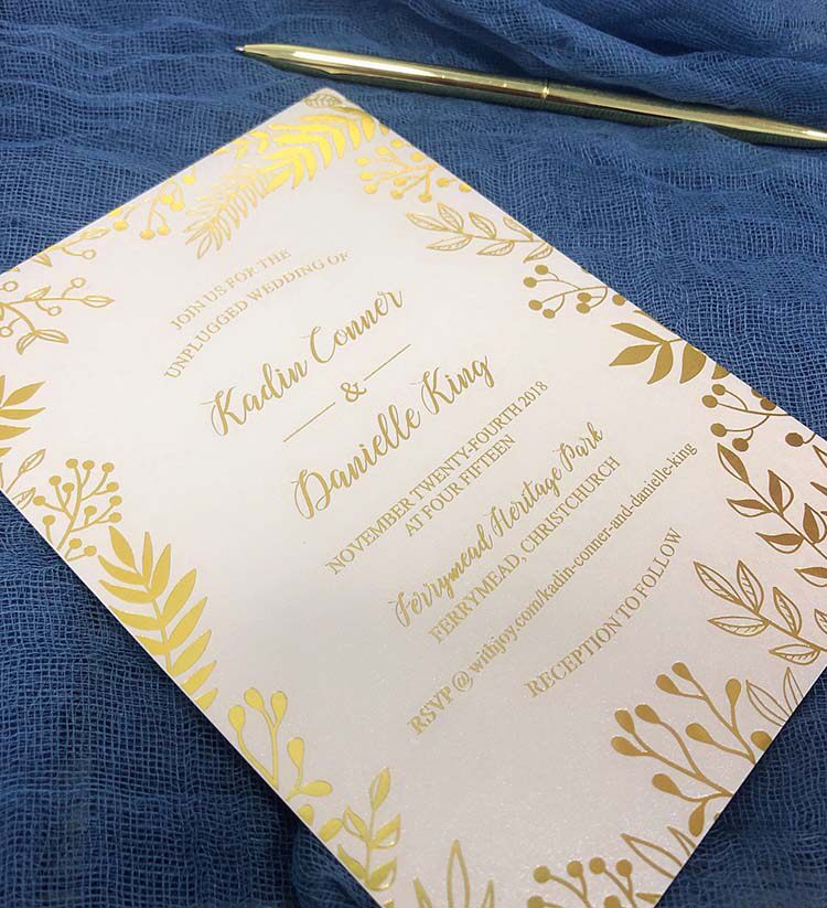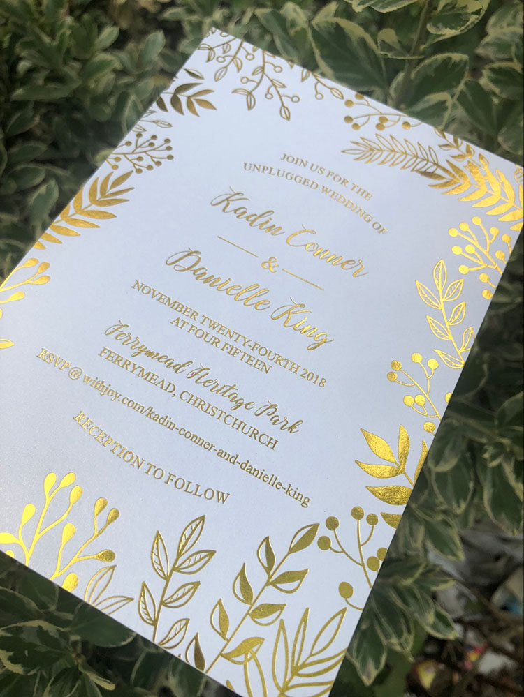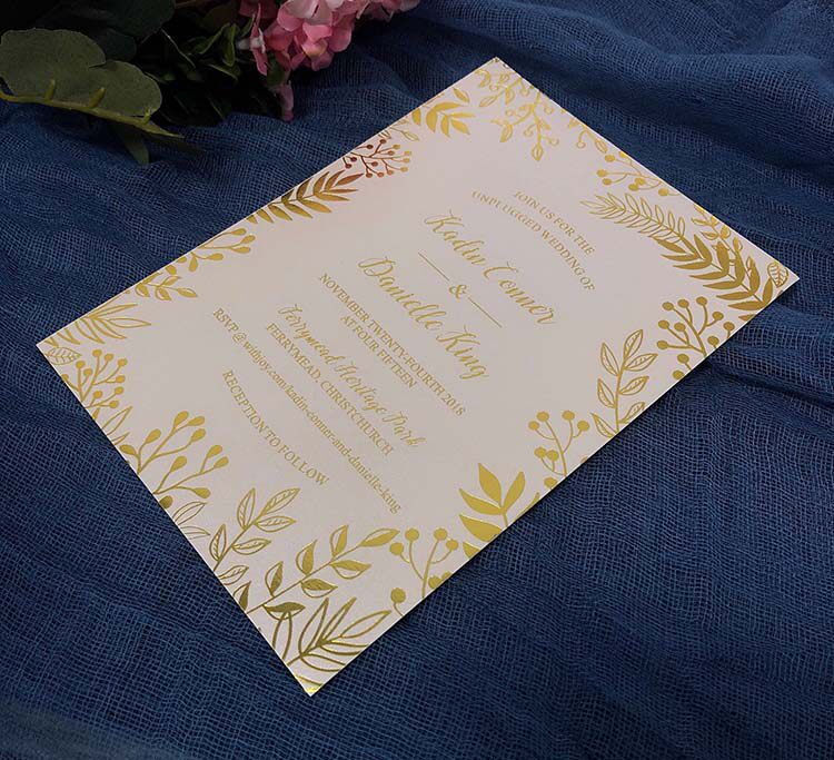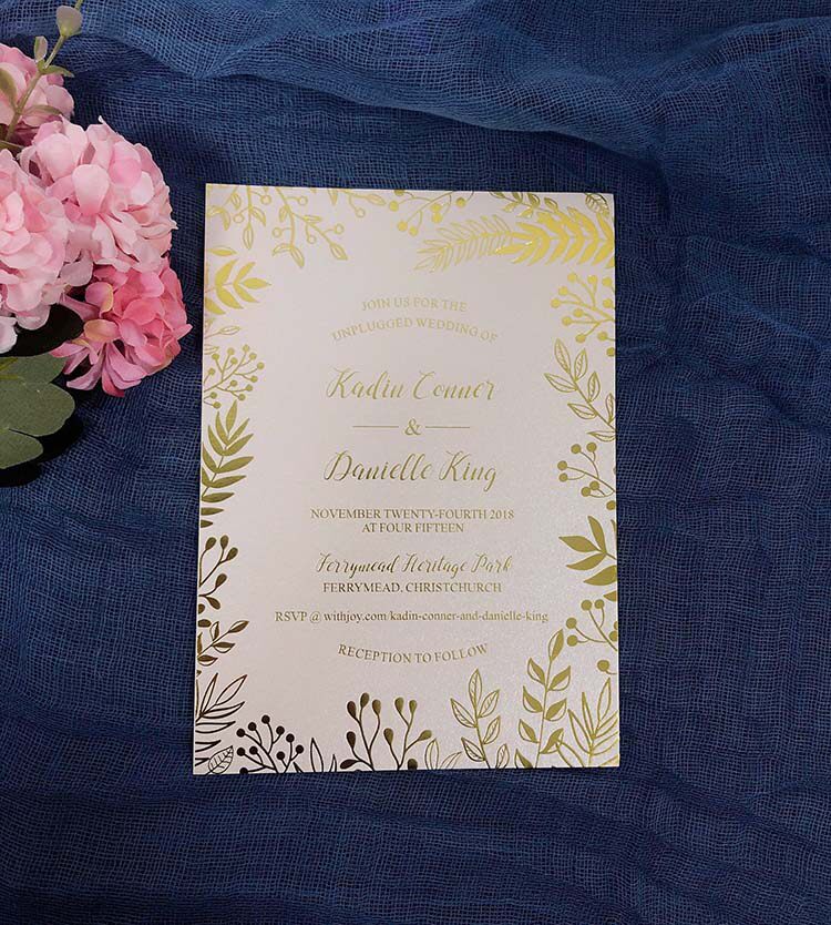 Personalized custom Mori small fresh golden leaf wedding invitation bronzing wedding invitation European pink wedding invitation