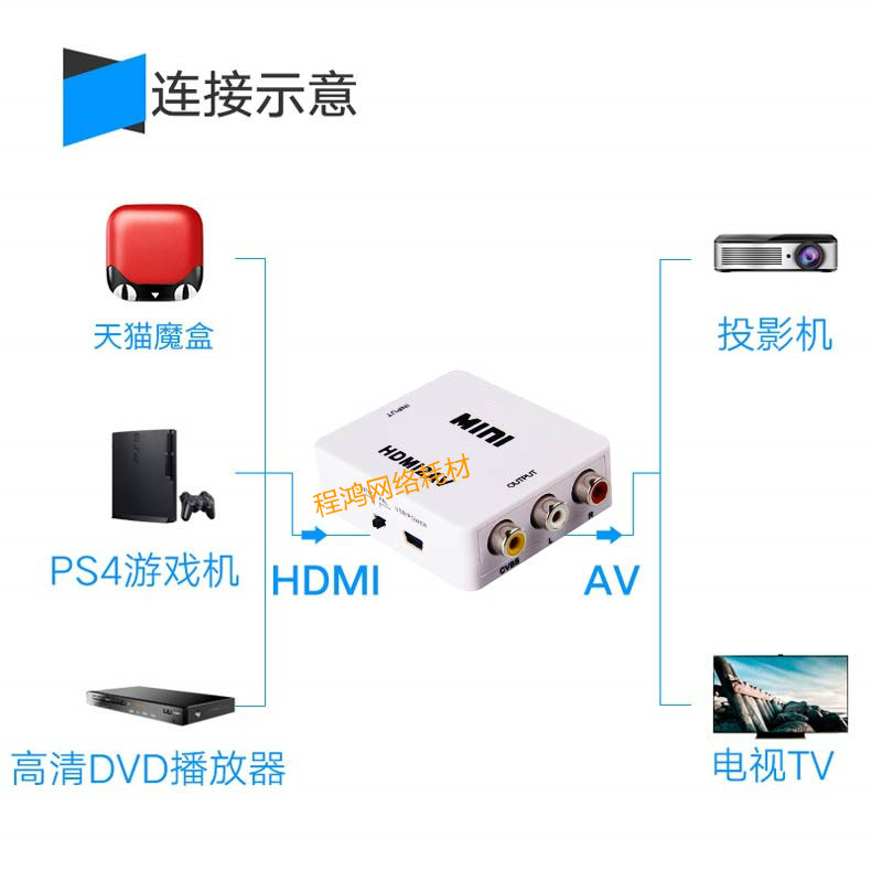 HDMI Go AV Converter Xiaomi barley Box HDMI HD Interface to pick up the old TV Lotus Lotus Transfer Line Tricolour
