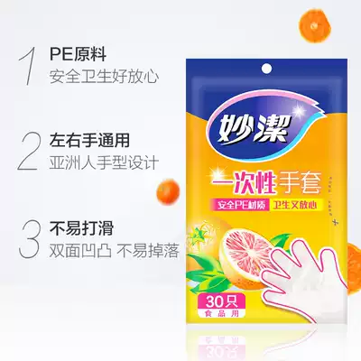 Miaojie disposable gloves PE food material new material is not easy to break 30 packs