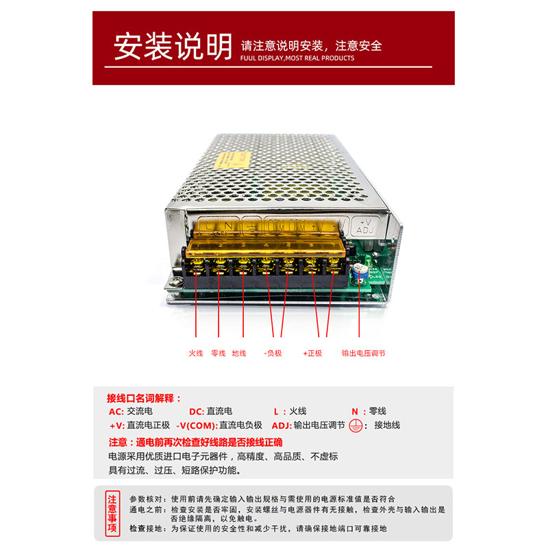 Switching power supply 220 turn 24v12v5v DC 2a3a5a10a20 safety monitoring light bar transformer volt high power