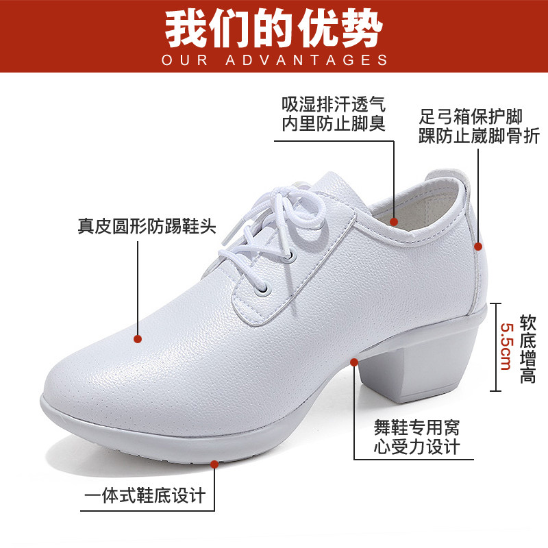 Shike Four Seasons Square Dancer's Shoes Middle Heel Sailor Dance Shoes White Adult Leather Fitness Dance Shoes Women's Soft Sole