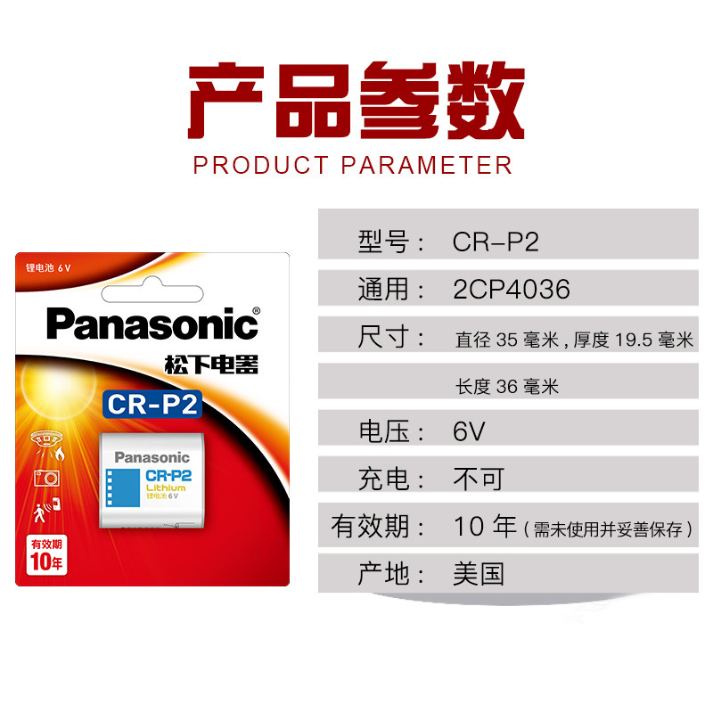 Panasonic CR P2 lithium battery 6V camera CR-P2 universal model 2CP4036 223 infrared sensor tap film machine film machine CRP2p2c