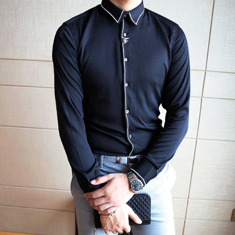 South Korea Fall Long sleeves Shirt Men's Korean version Youth trending sweaters Men's Inn Fashion Casual Pure blouses