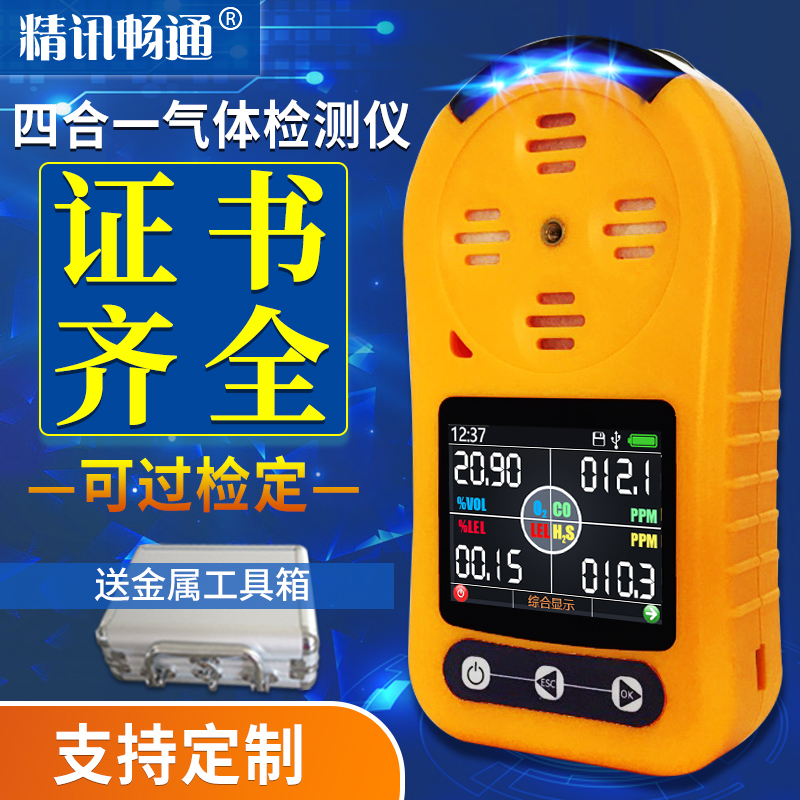 The four-in-one (EX H2S CO oxygen) (hydrogen sulfide H2S) (carbon monoxide CO) (oxygen O2) (combustible gas EX) four-in-one plus storage icon function six-in-one