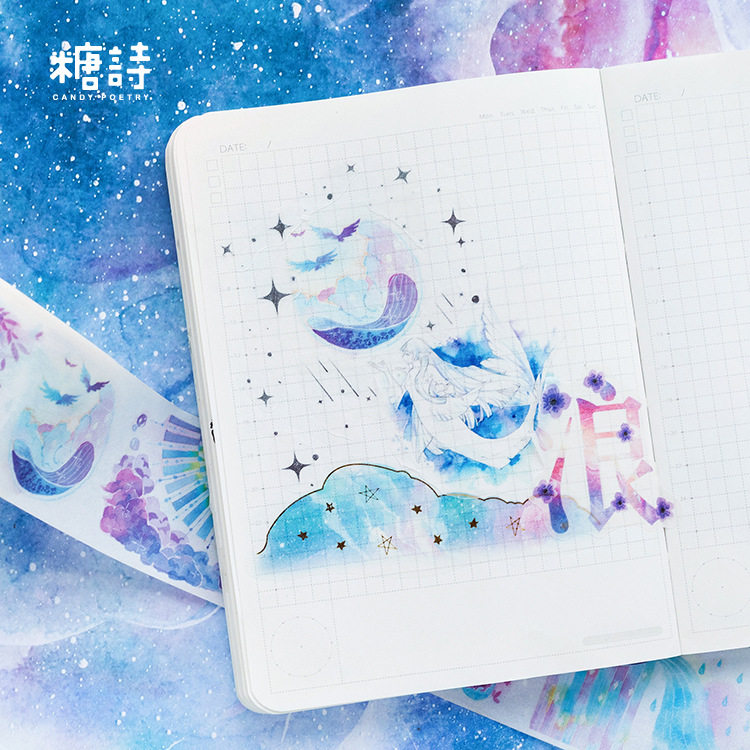 Sugar Poetry pursuers special inks and paper adhesive tapes DREAM MERITOCRATIC WATERCOLOR FLYING BIRD CLOUDS DIY HANDBILL ADHESIVE TAPE