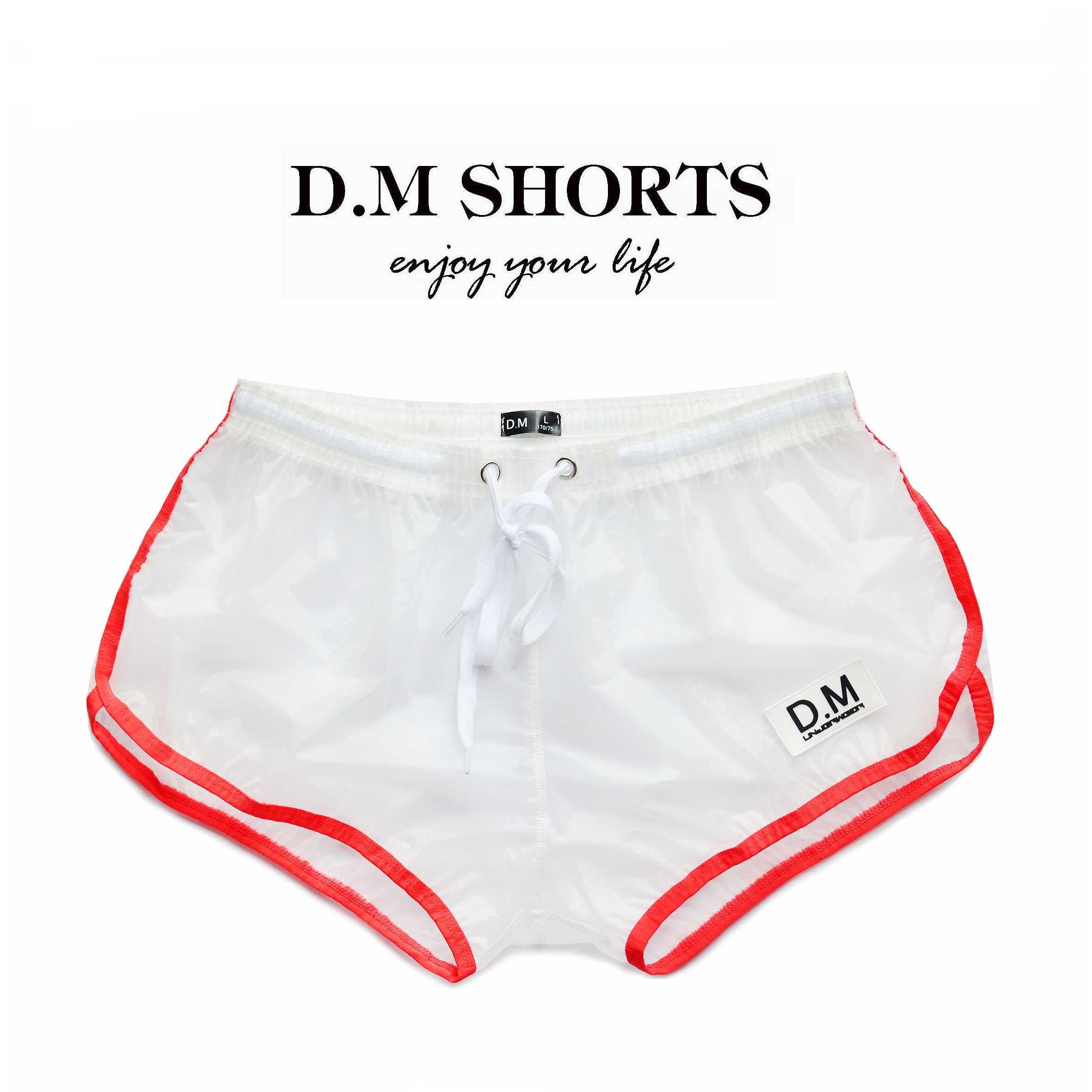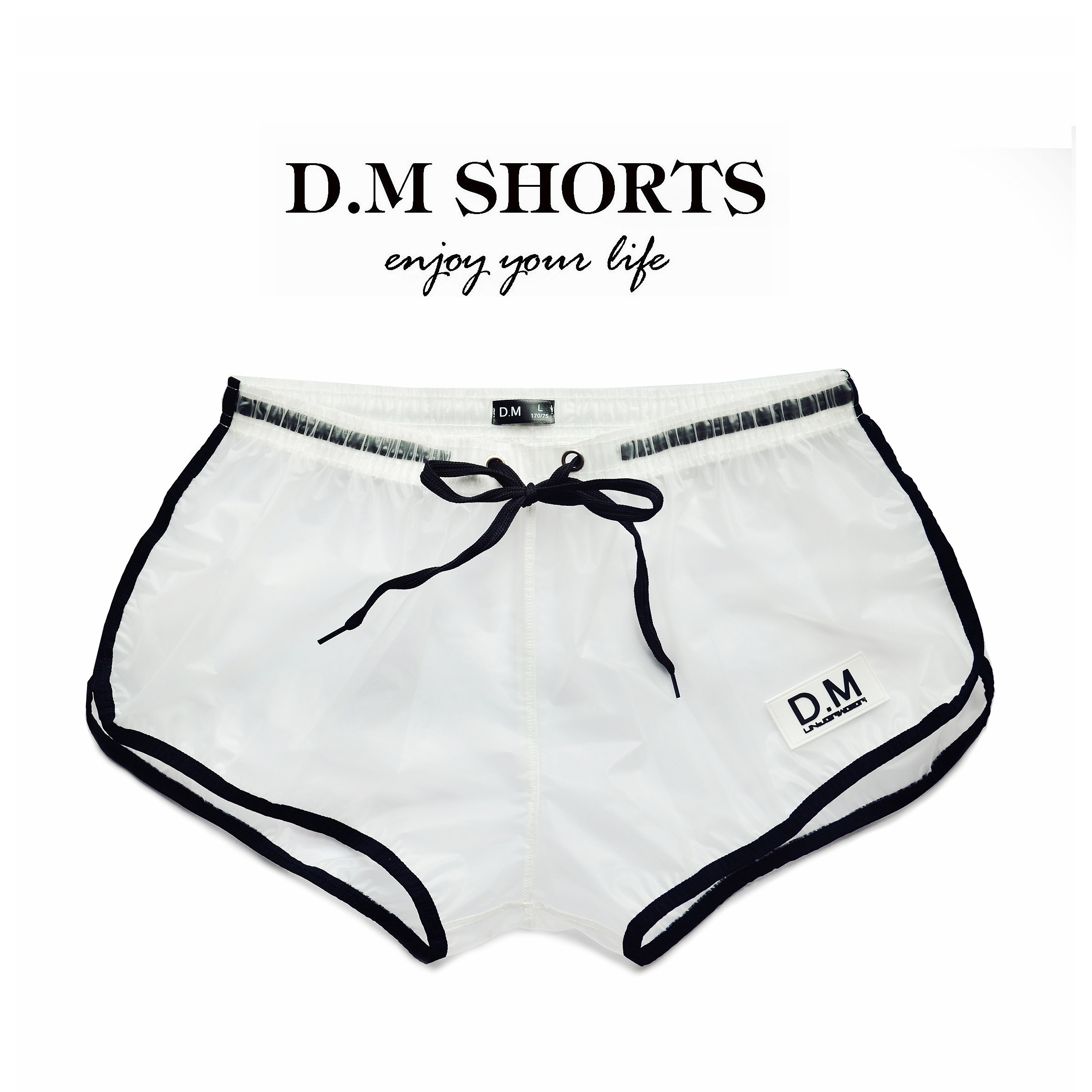 D M Men Shorts PVC Transparent Beach Pants Home Flat Angle Sexual Sensation Tidal looser No stretch