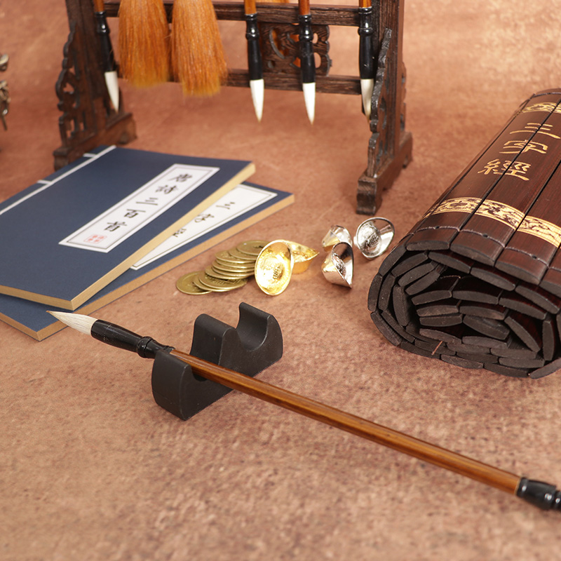 Small gold ingots small silver ingots copper money string of brush pens separated by wolverine pen holder bamboo slips pen holder bamboo slips pen holder Wang fan small number monarch fan big number Tang poetry Three hundreds of white fan Hulusi Green Flute White Flute White Flute Mini Gold Abacus Mini