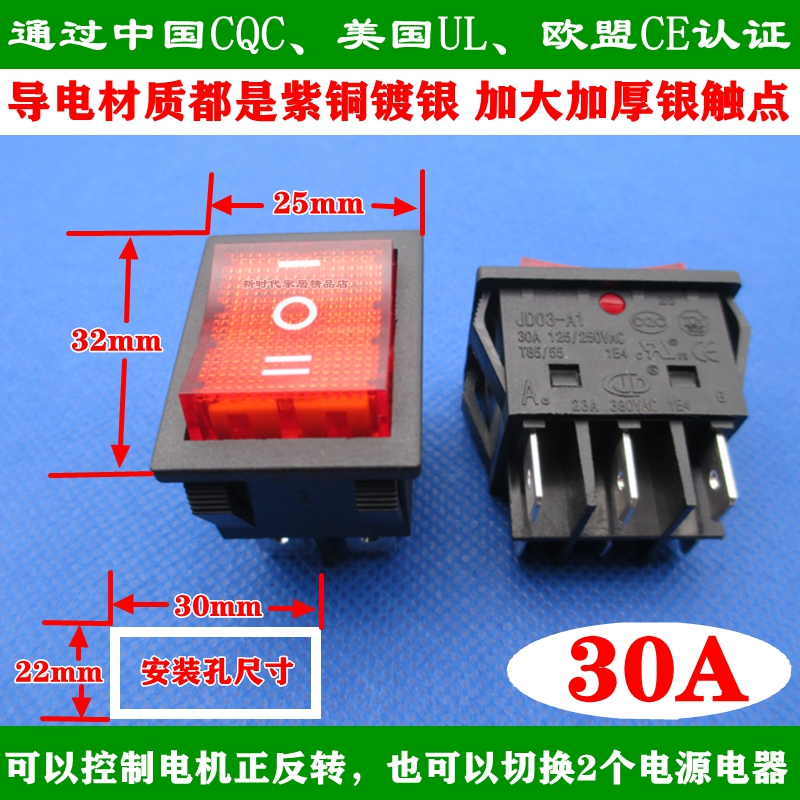 KCD2 flame retardant high temperature warp switch hexaft three - foot steering switch switch switch switch 30A