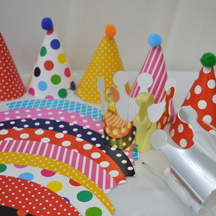 Paper birthday hat 11-piece set of birthday party dress-up supplies Baby hundred-day feast decoration Crown headdress Baking paper hat