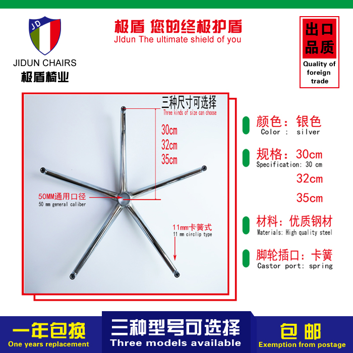 Swivel Chair Accessories Chair 5 Stars Tripod Chassis Thickened Computer Chair Base Office Chair Stretch Feet High Foot Aluminum Alloy
