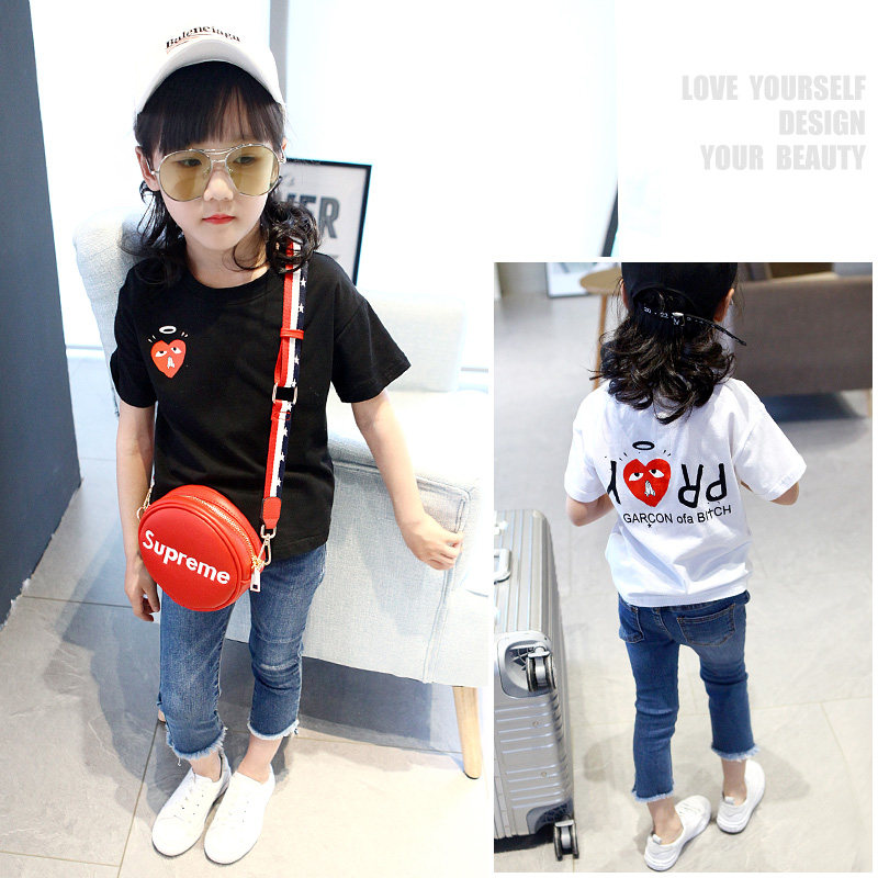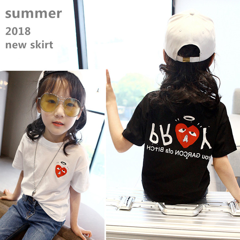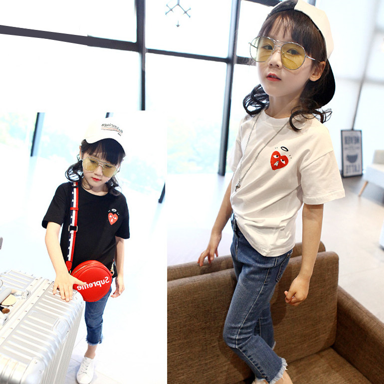Child Clothing Girl Half Sleeve T-shirt Foreign Pie Summer Dress CUHK Child Pure Cotton Short Sleeve Black White Blouse Child Beat