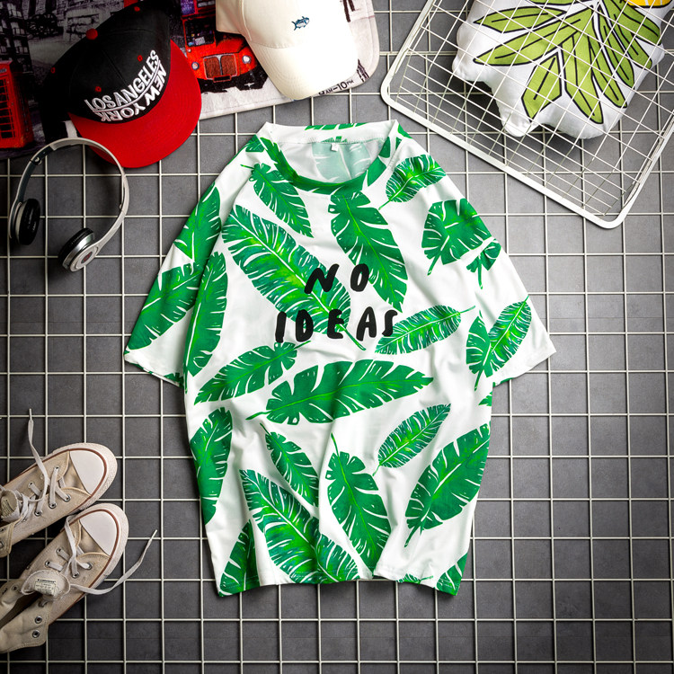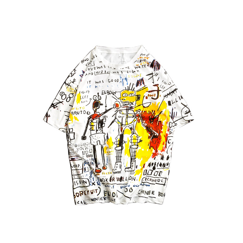 Summer new short-sleeved T-shirt men's hip-hop Hong Kong style graffiti printing half-sleeve T-shirt Korean version loose trendy students