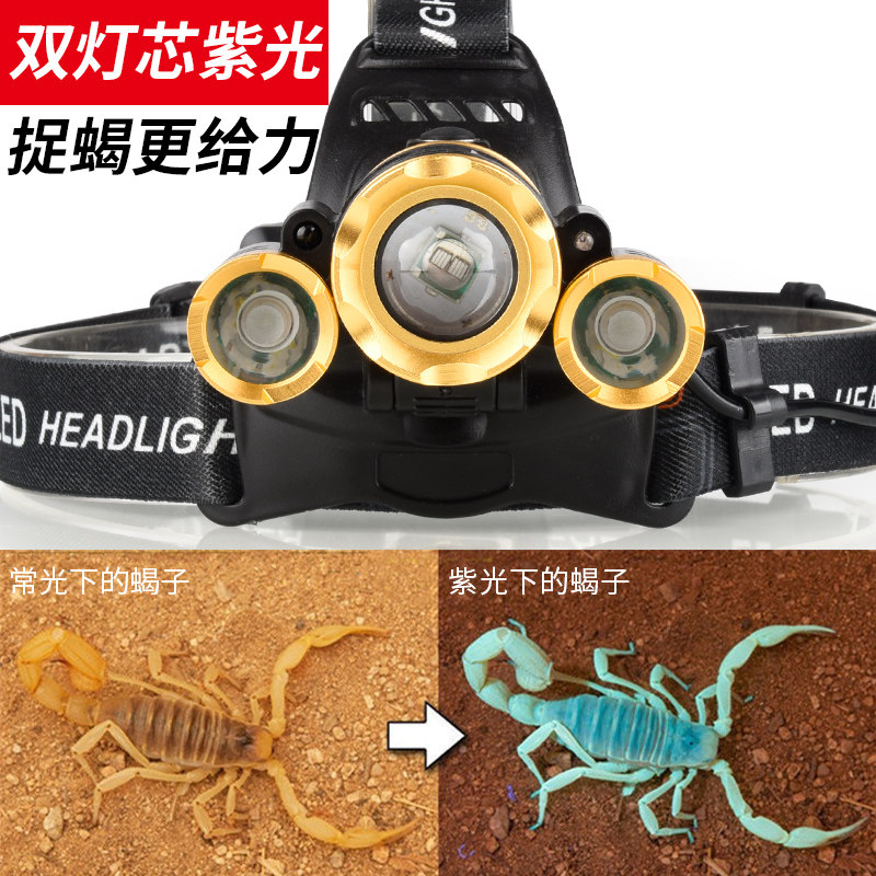 Head-mounted induction lamp Scorpion lamp Scorpion lamp Special strong light charging capture capture capture Scorpion lamp Purple light super bright