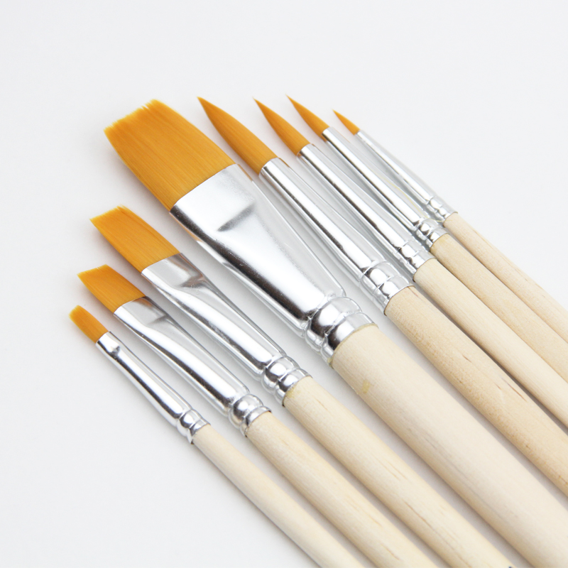 Bebio watercolor pen gouache propylene oil painting with flat hook line bristle nylon brush 8 yellow brown brush set group student sketching beginner art tools