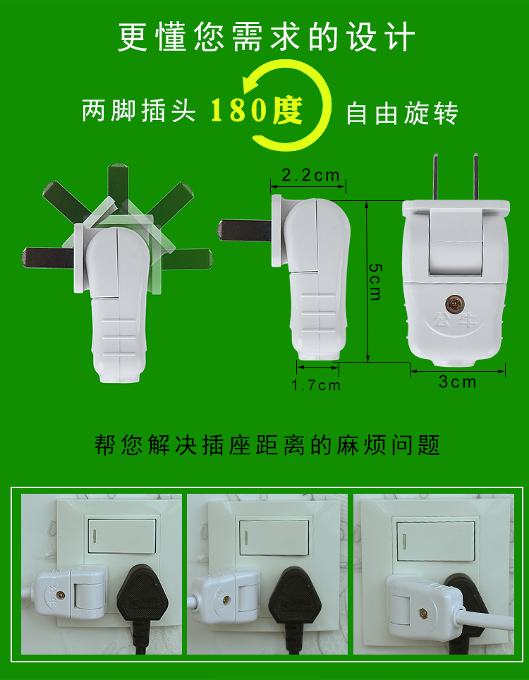Bull two-pin plug plug board two holes 2-pin socket plug-in terminal board long line plug board with wire drag board