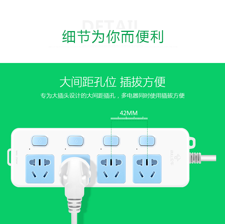 Four-position independent switch 315w bull socket 2 meters