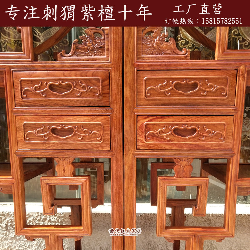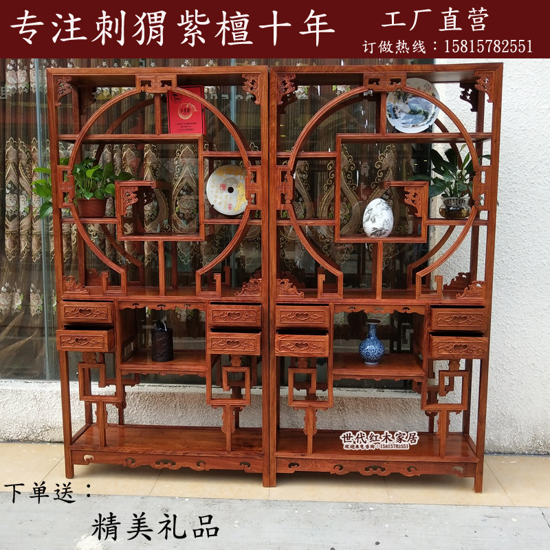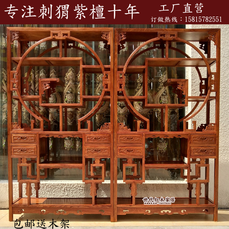 Mahogany Bogu shelf rosewood Xiaoduobaoge hedgehog red sandalwood new Chinese partition furniture display cabinet living room