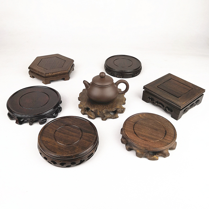 A Black Catali Wood Root Carved round B Chicken Wings Wood Engraved round C Chicken Wings Wood Hollowed-out Square D Aroma Red Wood Water Wave Seat E Chicken Wings Wood Root Carved round F Lars Wood Square Single Height G Russ