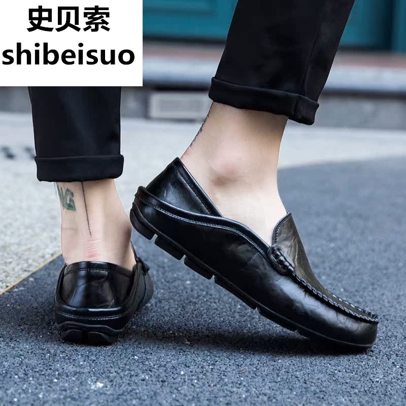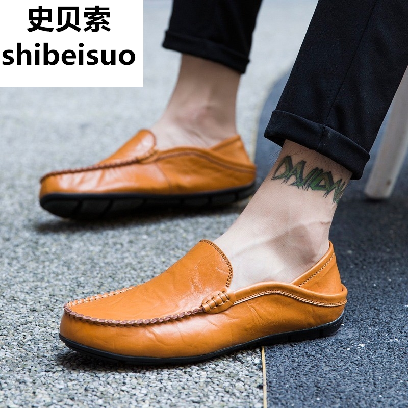 Spring Bull Leather Bean Bean Shoes Men Genuine Leather Casual Soft Bottom Driving Shoes Small Size 37 Grand Size 45 Plus Size 46 Men's Shoes