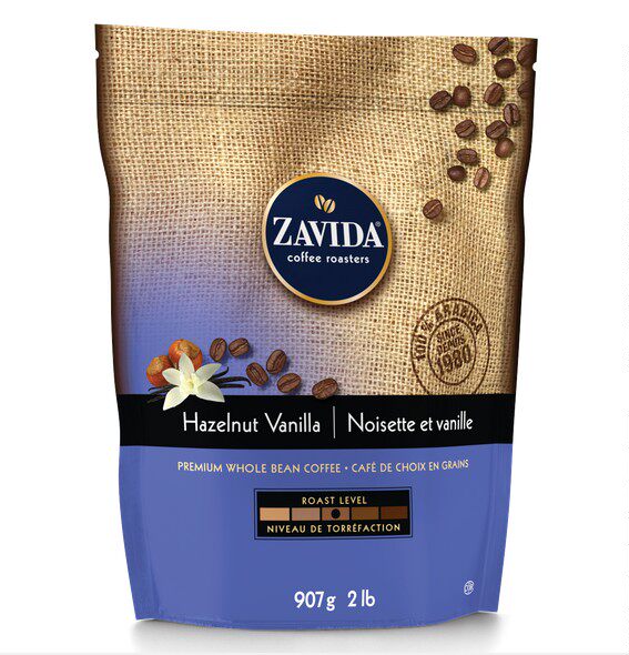 Canadian original ZAVIDA vanilla cream hazelnut taste coffee beans 907 gr 2 pounds