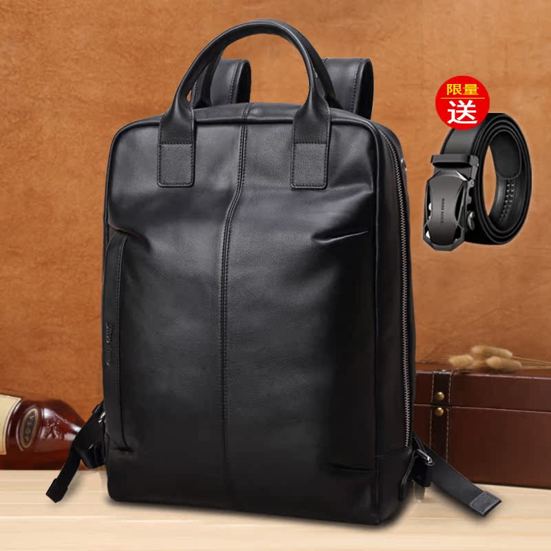 American bison men's backpack leather business casual first layer cowhide men's travel bag portable backpack computer bag