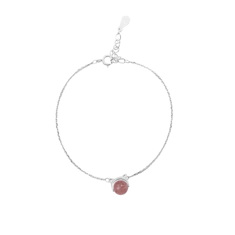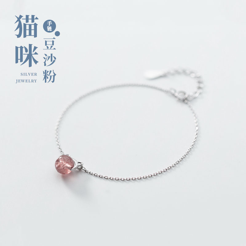 Cat stung S925 silver strawberry crystal cat hands - on girl Han Edition lovely luxury lady girl girl seven eve gift