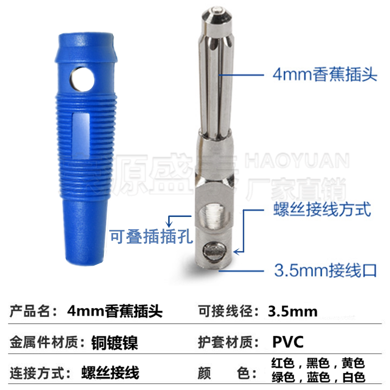 Pure copper welding-free 32A high current high voltage banana connector 4mm banana plug speaker line Banana head 7 pins