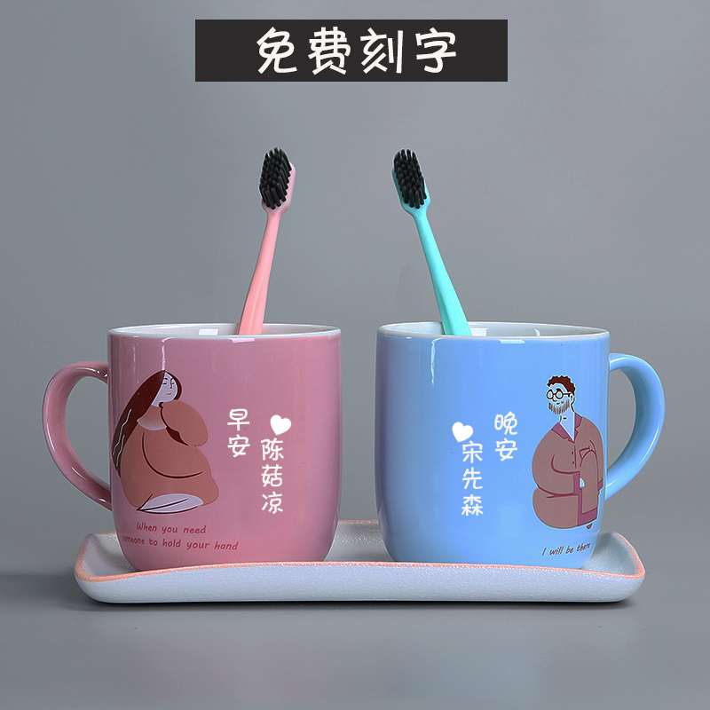 New pink blue Good Night 1 pair of women Caring handles Snowflake Glaze Pink Single Cup Men's Loving Handle Snowflake Blue Single Cup Loving Handle Snowflake FISH MOUTH A PAIR OF ACCESSORIES BASE CARING HANDLE SNOWFLAKE GLAZED