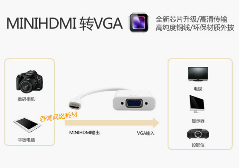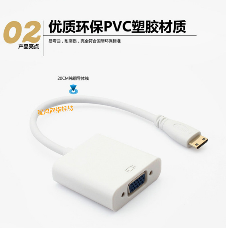 Mini HDMI to VGA cable Small port Mini HDMI to VGA tablet computer camera connected to TV projector