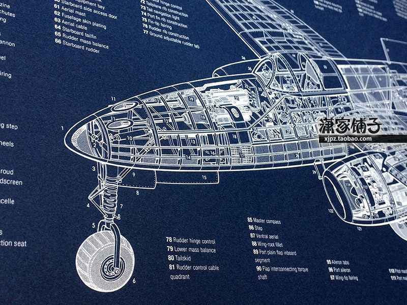 World War II German famous HE 280 jet fighter structural blueprint hanging poster decorative painting