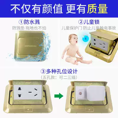 Vision shell ground socket all copper waterproof damping power supply 5 five-hole hidden floor floor floor home Open slow spring up