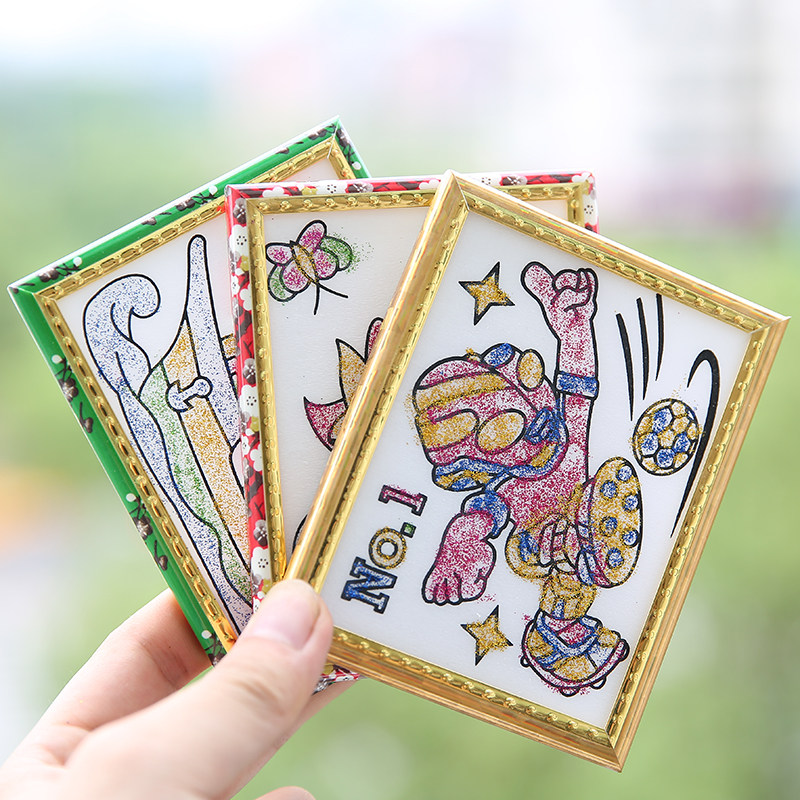 Child Gold Powder Painting Handcrafted Color Graffiti Painting Sand Painting Gel Painting Paint Suit With Frame Creative Puzzle Diy Toy