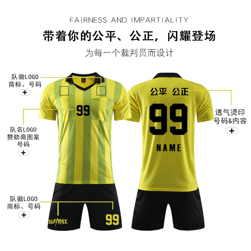 New football referee suit set short sleeve breathable football suit match referee suit set DIY empty board customization