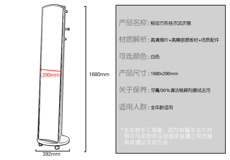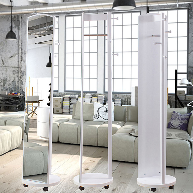 Full body mirror square mobile with wheels can hang clothes three-dimensional dressing mirror fitting mirror clothing store mirror white simple