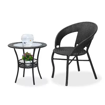 Small rattan chair coffee table three-piece outdoor chair balcony casual weaving pastoral iron bracket simple modern table and chair